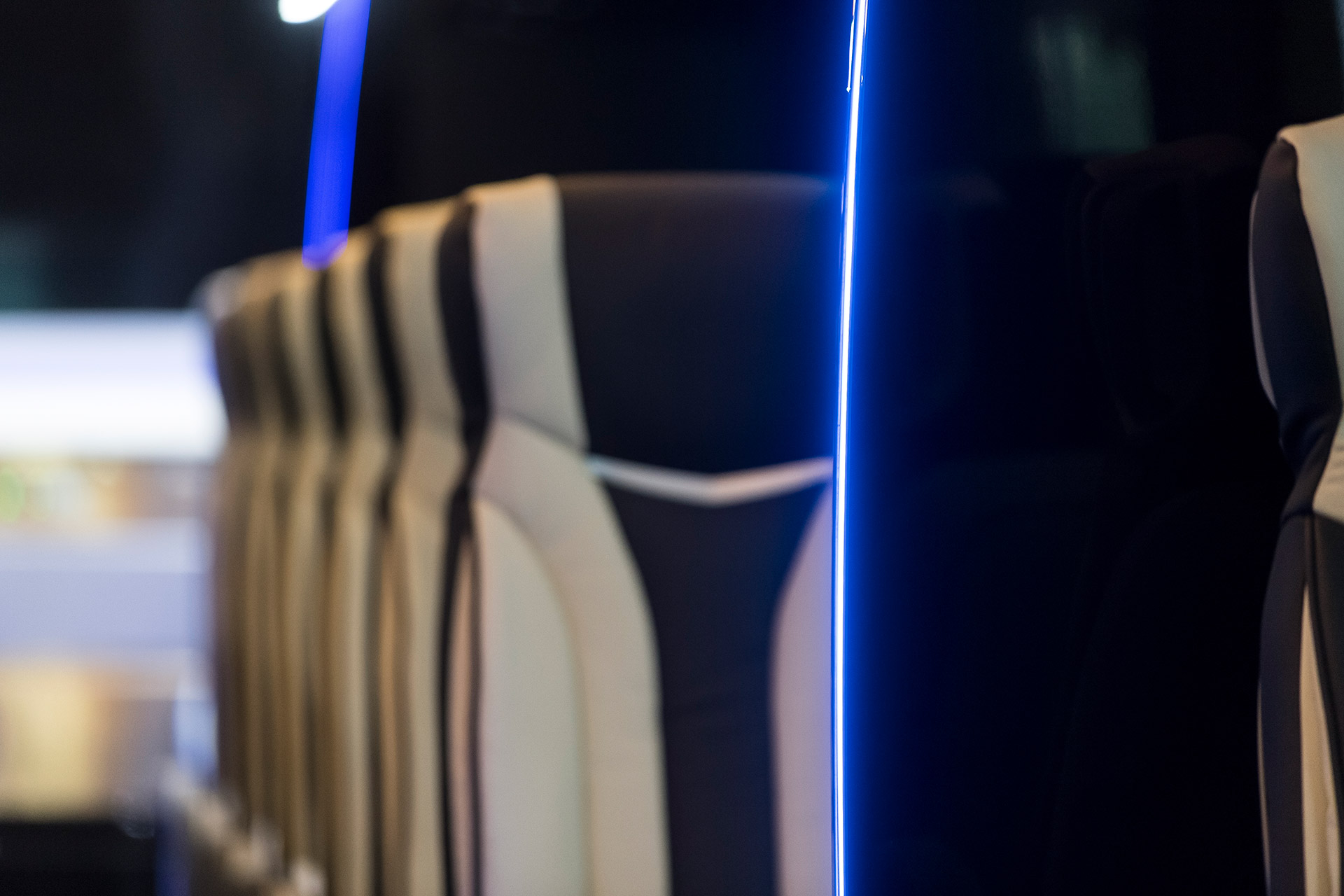 Bien que son élégance visuelle ne puisse pas être ignorée, son développement a essentiellement été basé sur d’autres concepts tels que le confort, la fonctionnalité et la capacité d’adaptation. Nos sièges, en plus de respecter les principes de l'ergonomie, incluent dans leur configuration des ceintures à 3 points, des écrans intégrés, des tables, des porte-manteaux, des poignées, etc.